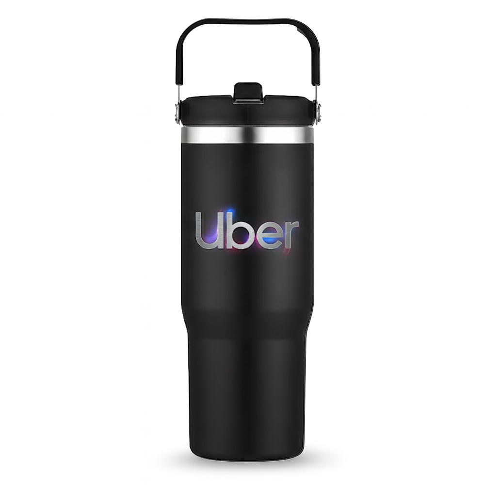 A tall, rugged tumbler with a locking lid and carry handle for easy transport.